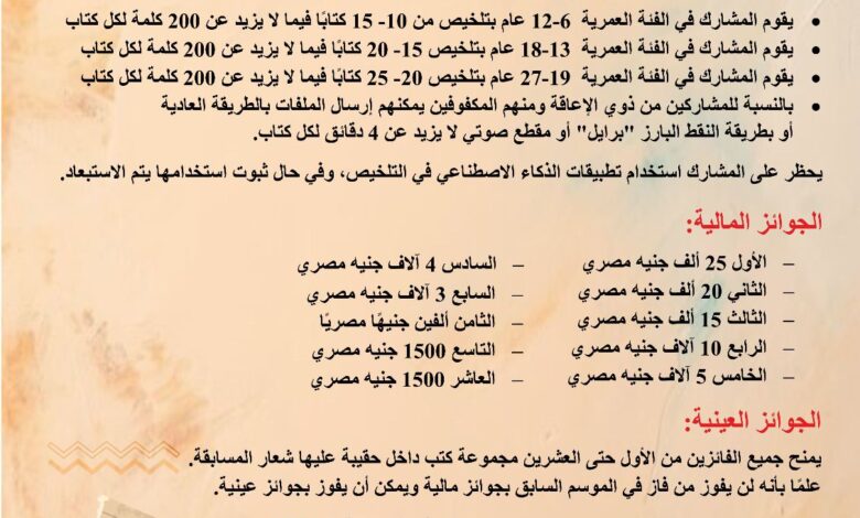 تستهدف مسابقة “مصر تقرأ” تلخيص إصدارات وزارة الثقافة من خلال ثلاث فئات عمرية: الأولى من 6 إلى 12 عامًا، الثانية…